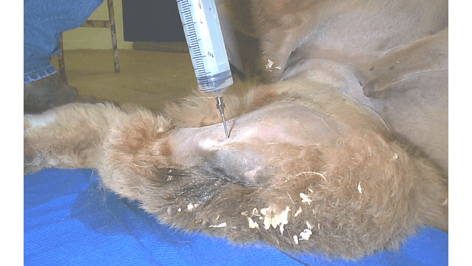 - 4 ml/kg hypertonic saline solution (~ 2 L per adult cow) administer as fast as possible through 14 G catheter