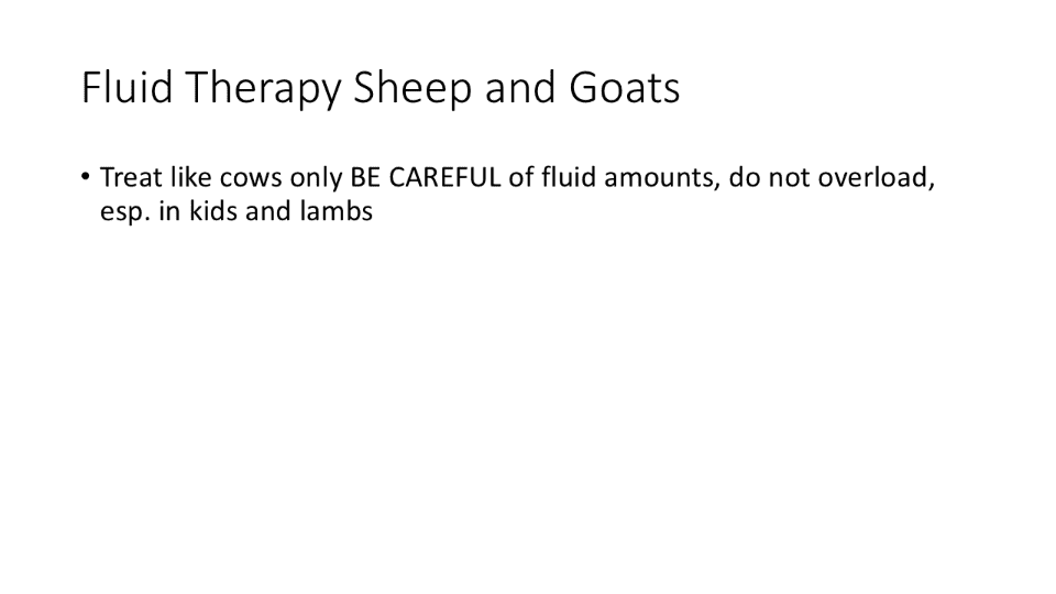 - Treat like cows only BE CAREFUL of fluid amounts, do not overload, esp. in kids and lambsp.23