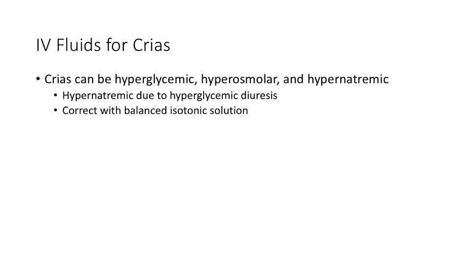 - Crias can be hyperglycemic, hyperosmolar, and hypernatremic
