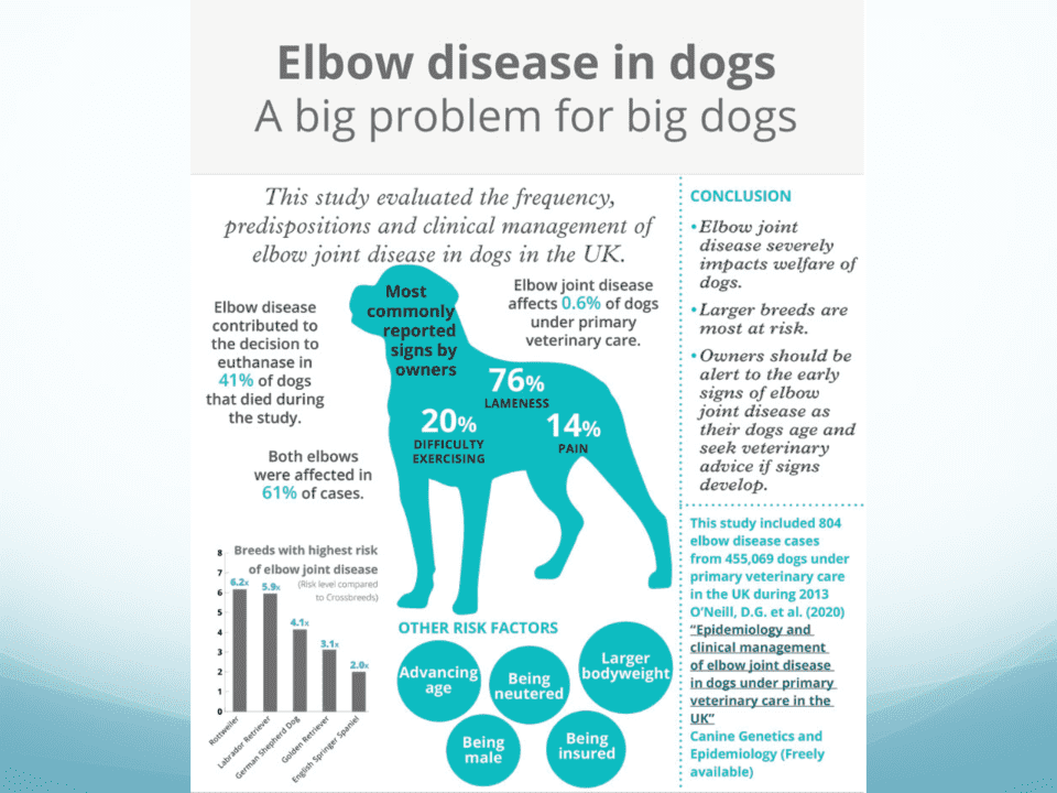 - Elbow joint disease affects 0.6% of dogs under primary veterinary care.