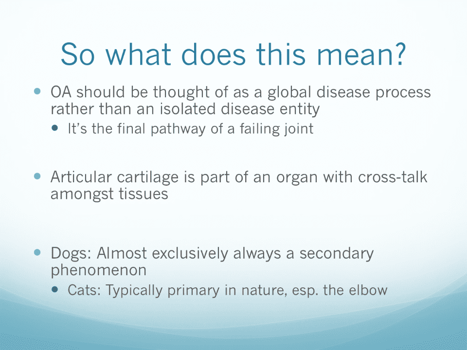 - OA should be thought of as a global disease process rather than an isolated disease entity