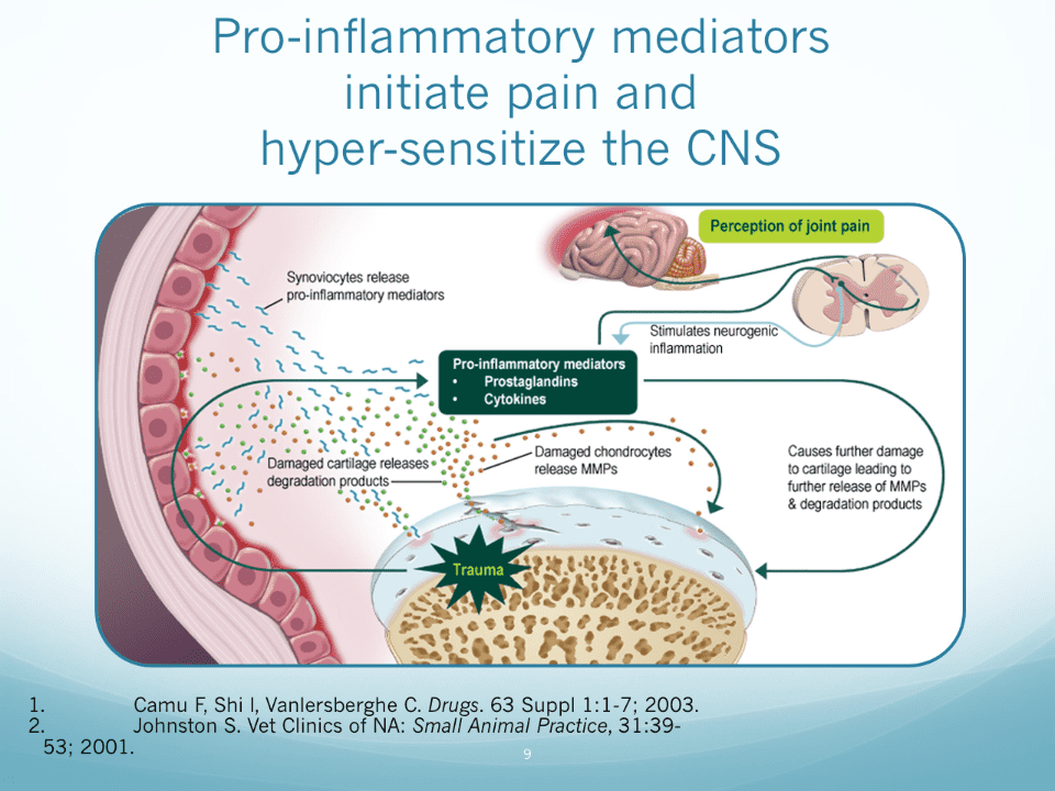 Pro-inflammatory mediators initiate pain and hyper-sensitize the CNS