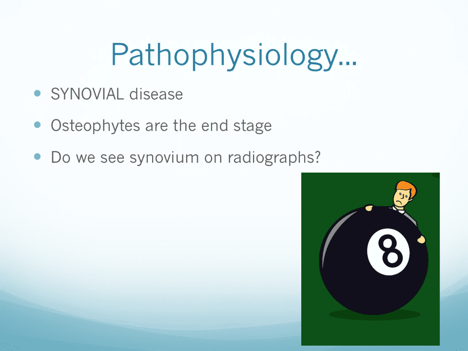 - And.... Radiographs help dx but don’t really help stage for monitoring or progression????
