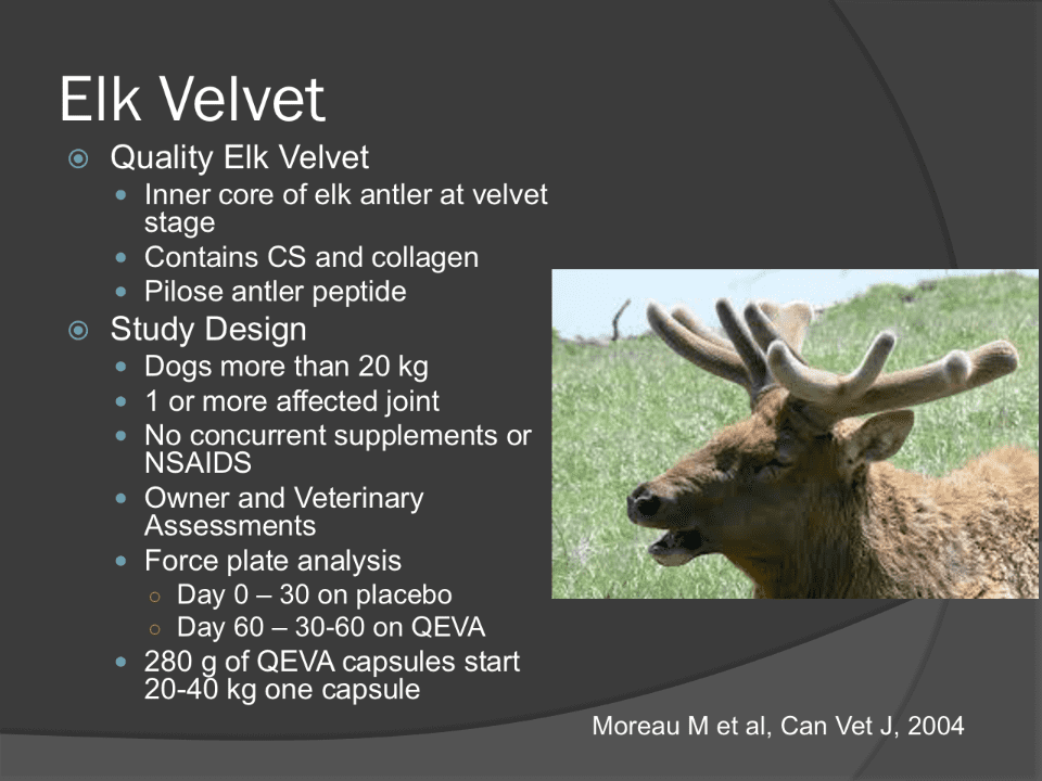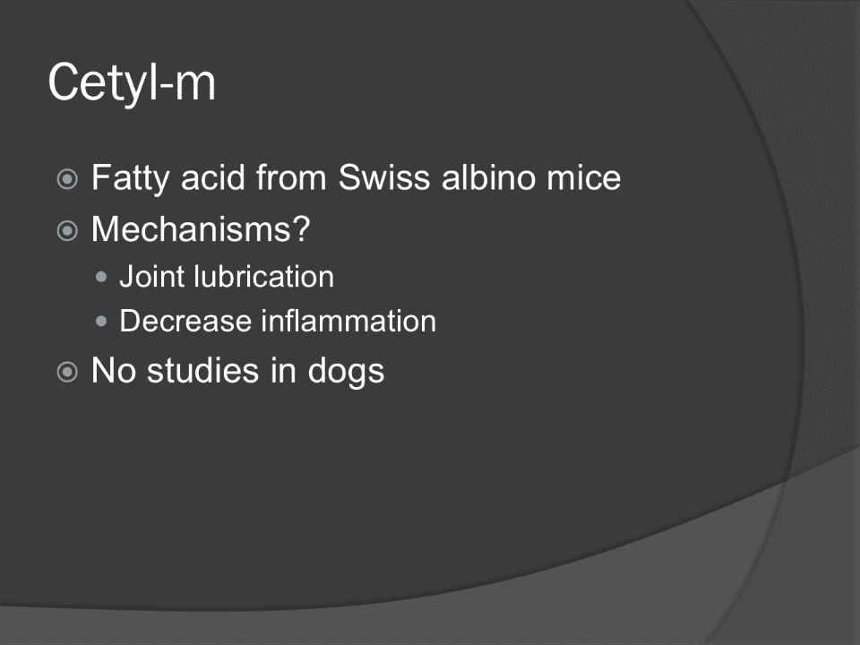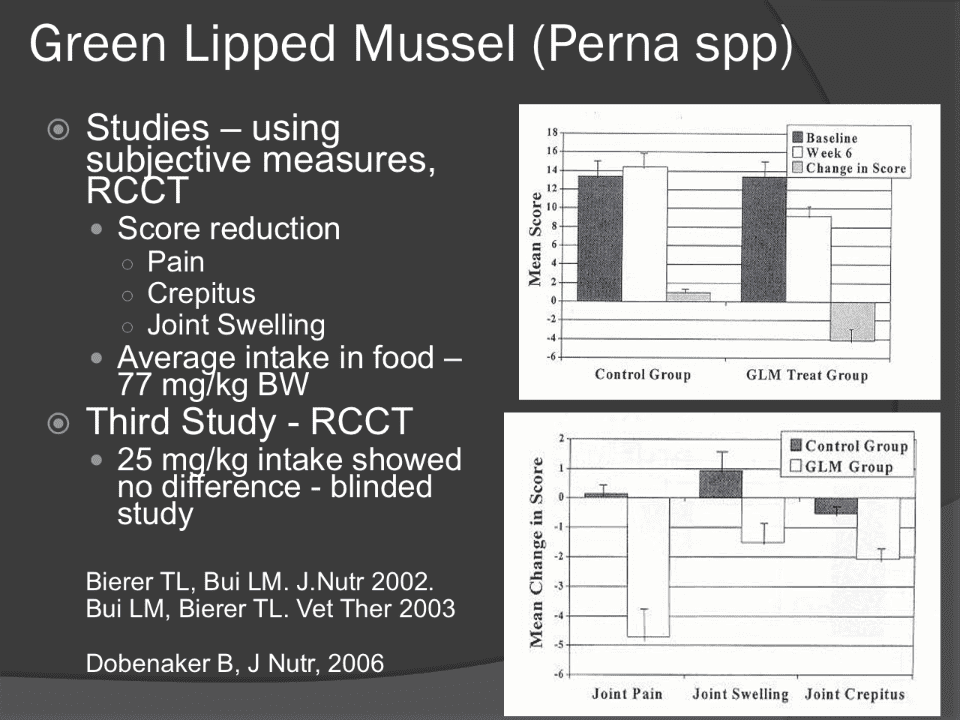 - A study in dogs showed improved clinical signs - lameness, pain, stiff gaitp.11