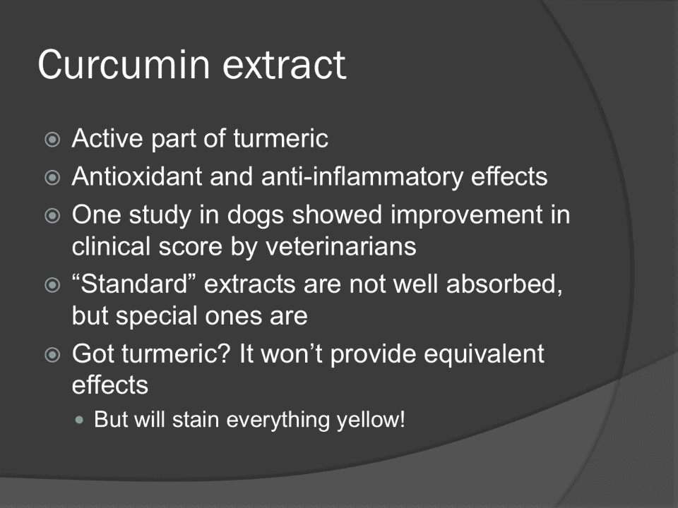 - One study in dogs showed improvement in clinical score by veterinarians