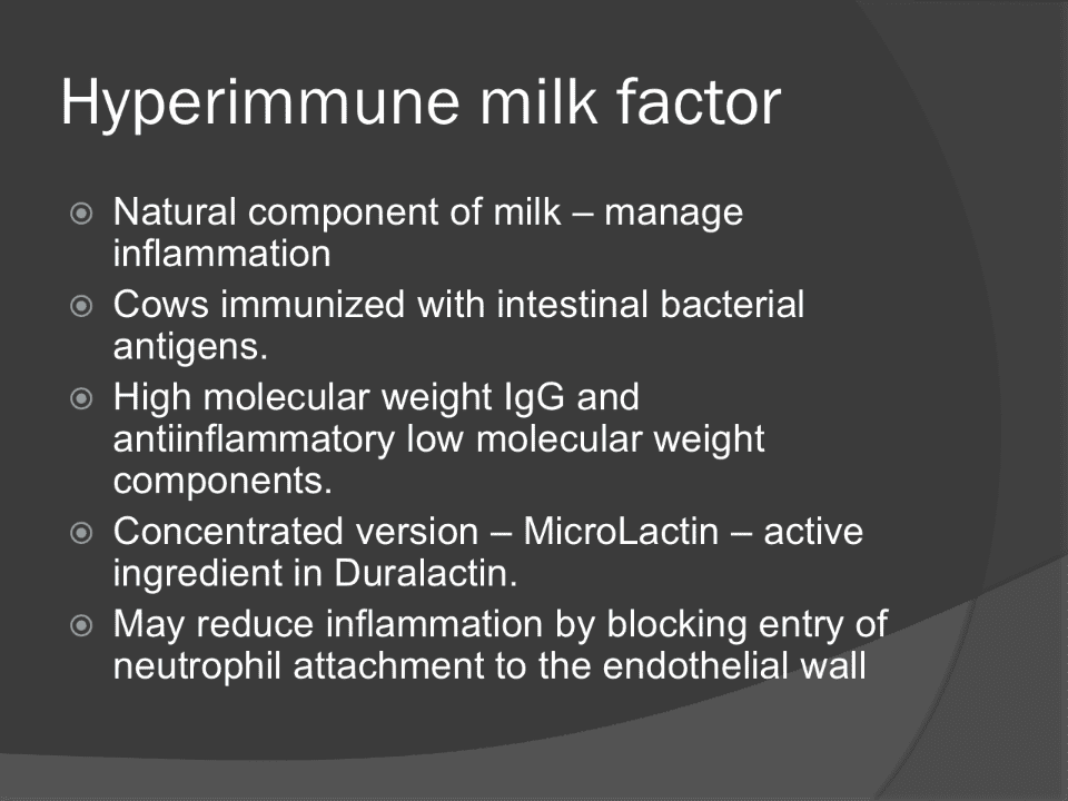 - Natural component of milk - manage inflammation