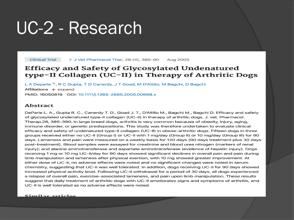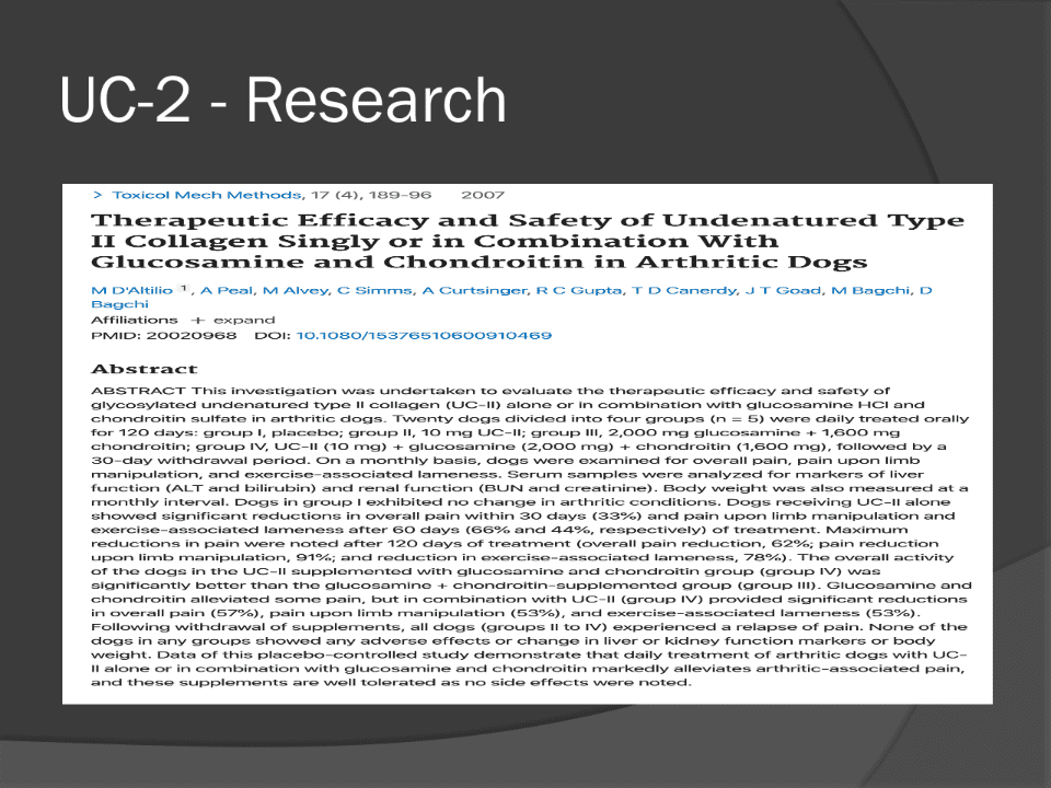p.24 p.24 UC-2 - Research Efficacy and Safety of Glycosylated Undenatured type-II Collagen (UC-II) in Therapy of Arthritic Dogs p.24