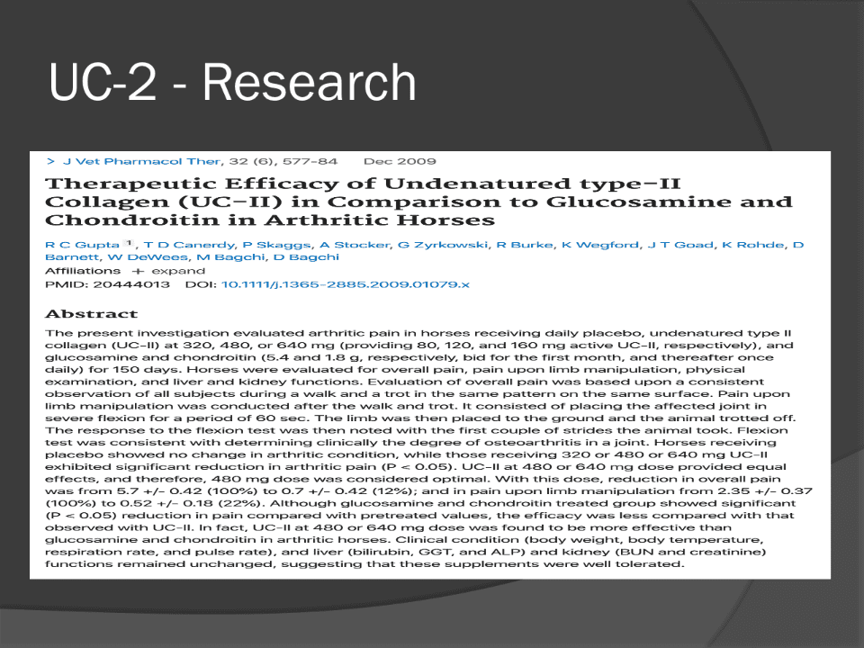 p.26 p.26 UC-2 - Research Therapeutic Efficacy of Undenatured type-II Collagen (UC-II) in Comparison to Glucosamine and Chondroitin in Arthritic Horses p.26