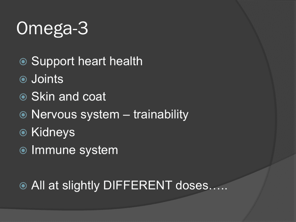 - 1 ml/5 kg = 550 mg EPA/DHA