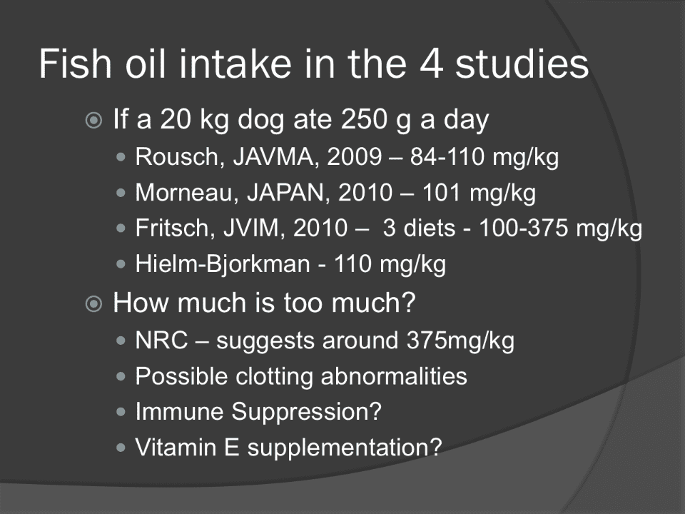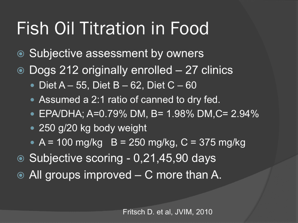 - Fritsch, JVIM, 2010 - 3 diets - 100-375 mg/kg