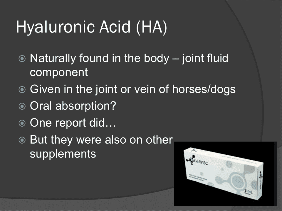Diplomate, American College of Veterinary Sports Medicine and RehabilitationNUTRITIONAL SUPPLEMENTS FOR ANIMAL ATHLETES, WHAT KEEPS JOINT HAPPY?:
