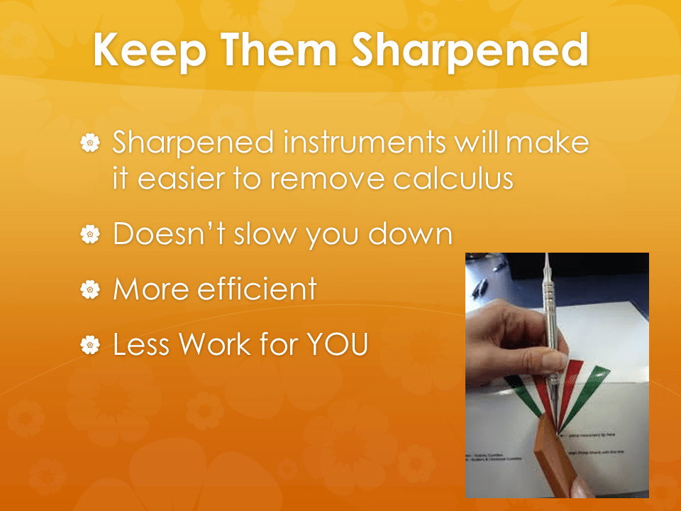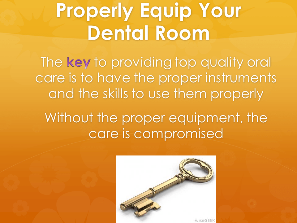 -The key to providing top quality oral care is to have the proper instruments and the skills to use them properly-Without the proper equipment, the care is compromised