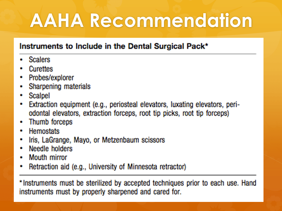 - Extraction equipment ( e.g., periosteal elevators, luxating elevators, periodontal elevators, extraction forceps, root tip picks, root tip forceps)