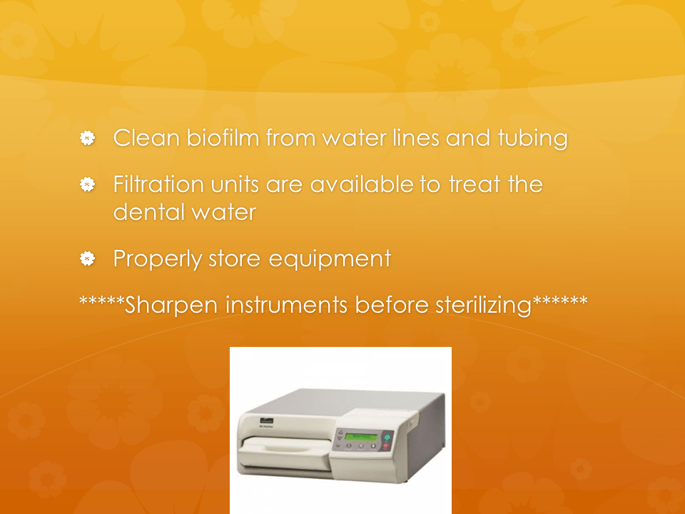 - Prophy heads that are not self lubricating, need to be checked weekly