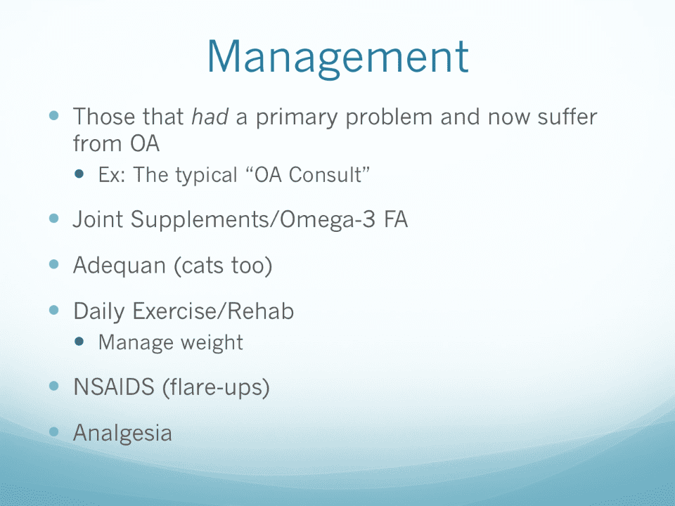 - Then every 4-6 months thereafter1. Budsberg et al. JAVMA 427-432, 2018