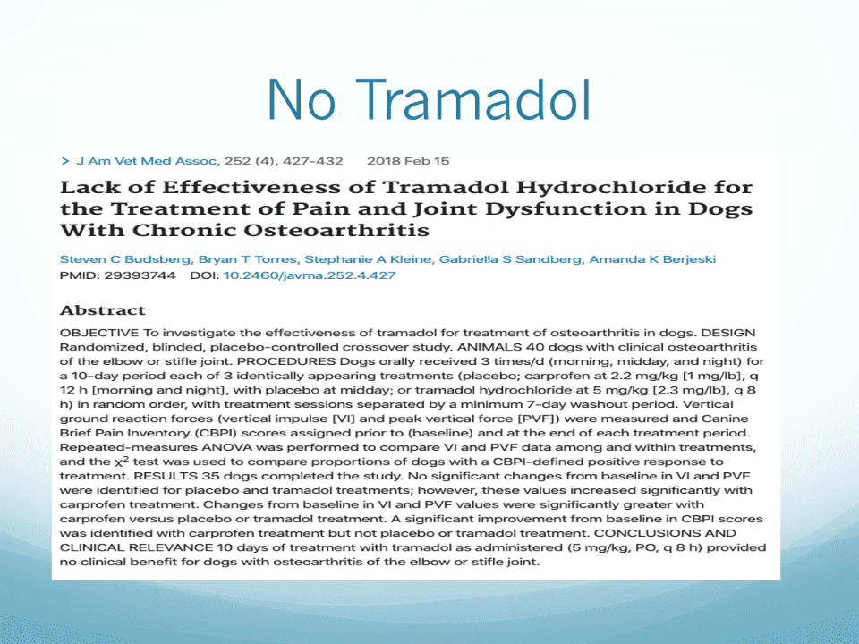 Lack of Effectiveness of Tramadol Hydrochloride for the Treatment of Pain and Joint Dysfunction in Dogs With Chronic Osteoarthritis