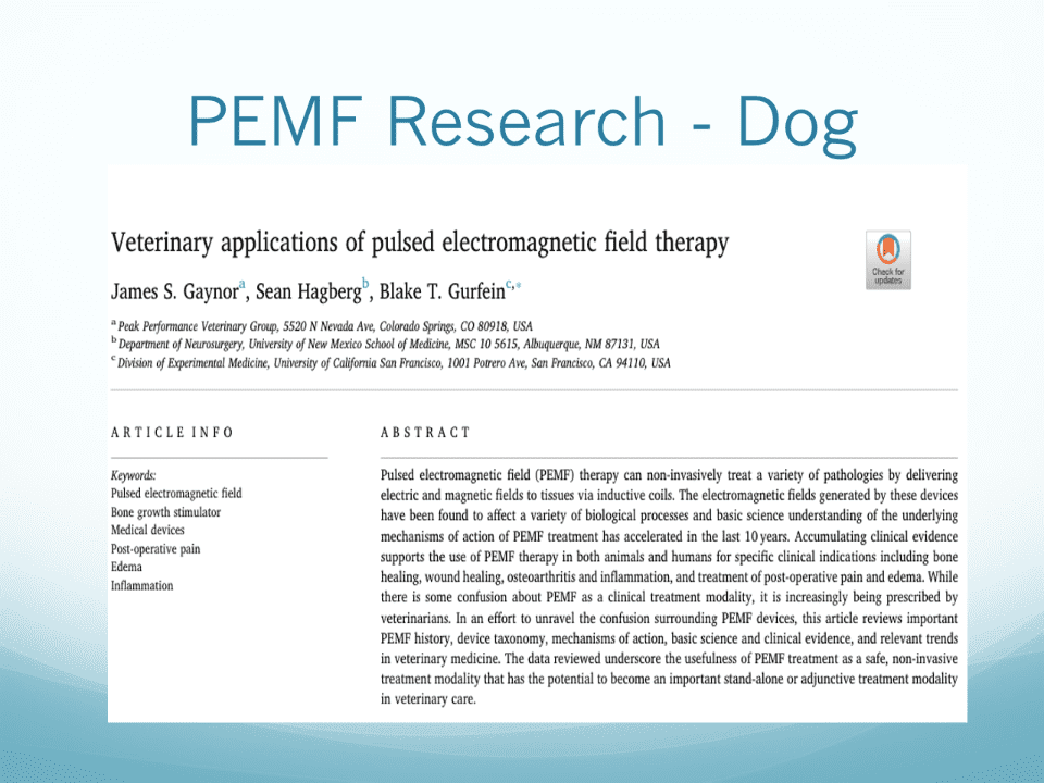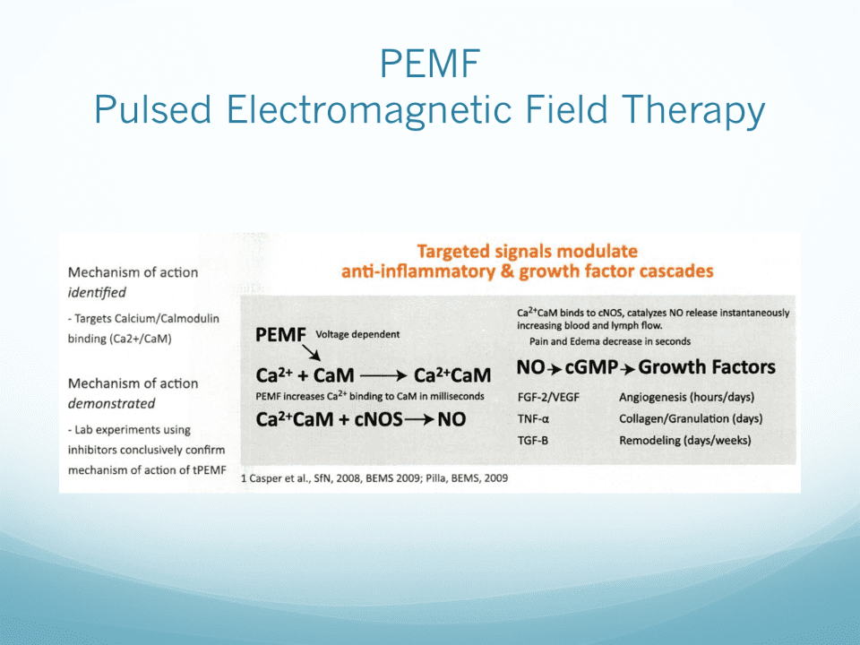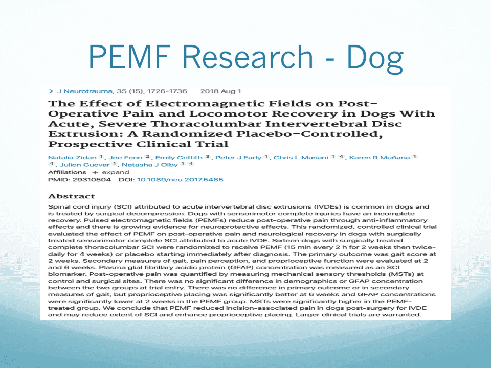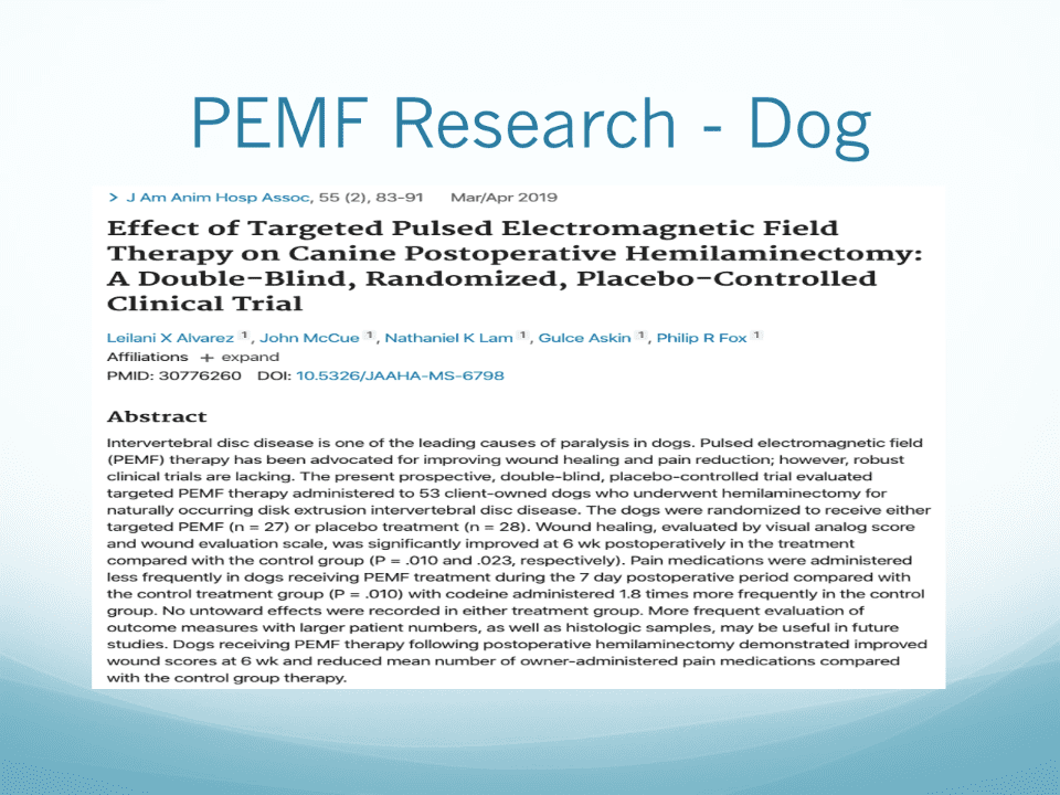 -PEMF comparable to NSAIDsPEMF effects in human & veterinary clinical trials correlated with anti- inflammatory activity, pain reduction & ~ 50% reduced opioid intake