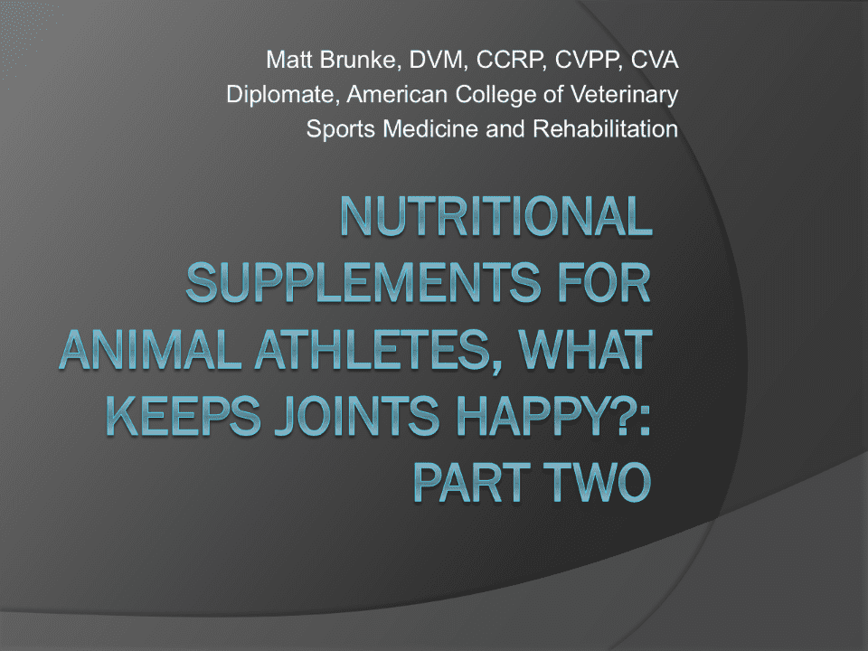 Diplomate, American College of Veterinary Sports Medicine and RehabilitationNUTRITIONAL SUPPLEMENTS FOR ANIMAL ATHLETES, WHAT KEEPS JOINT HAPPY?: