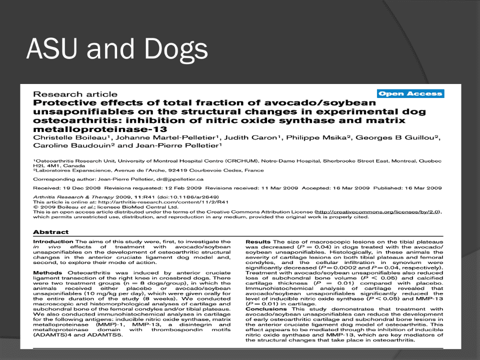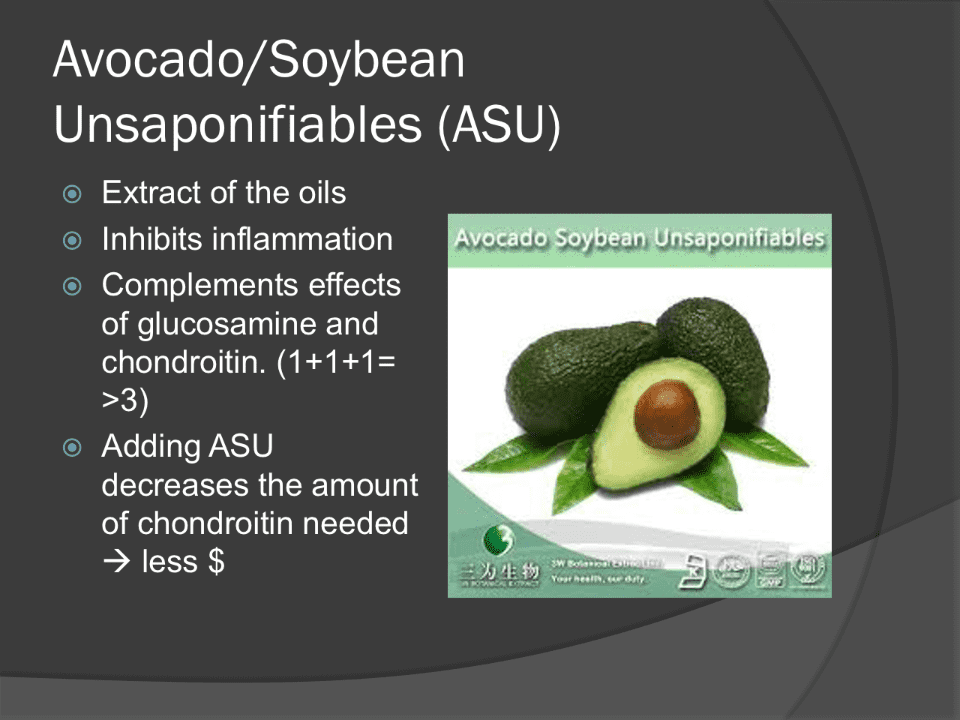 - Adding ASU decreases the amount of chondroitin needed - less $p.2 -