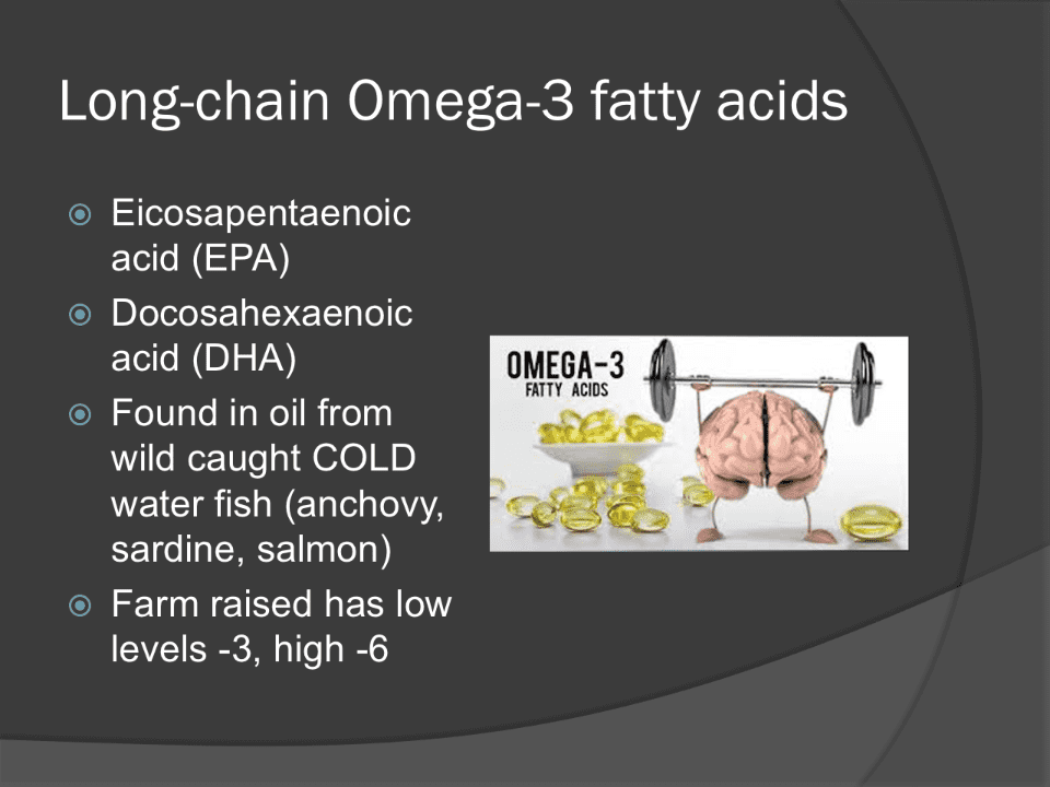- Found in oil from wild caught COLD water fish (anchovy, sardine, salmon)