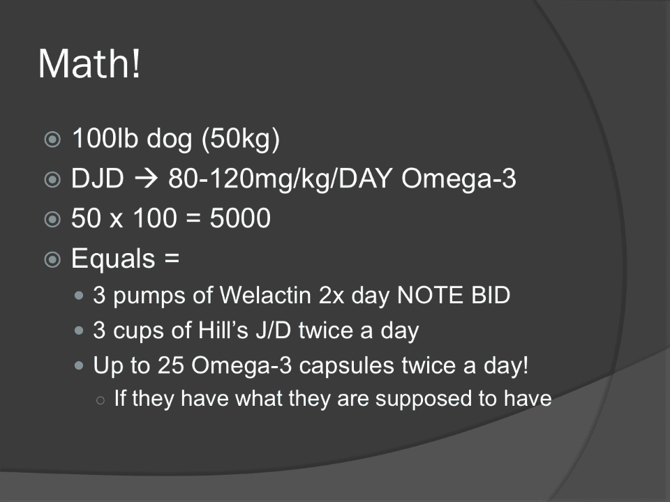 - 1 ml/5 kg = 550 mg EPA/DHA