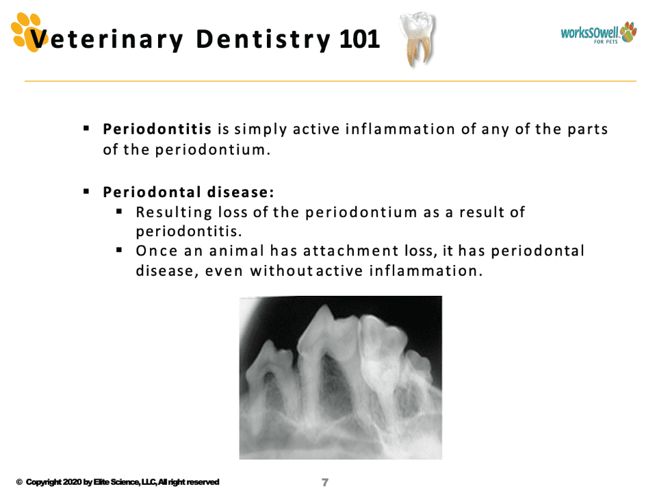 - Once a n animal has attachment loss, it has periodontal disease, even without active inflammation.p.7 -