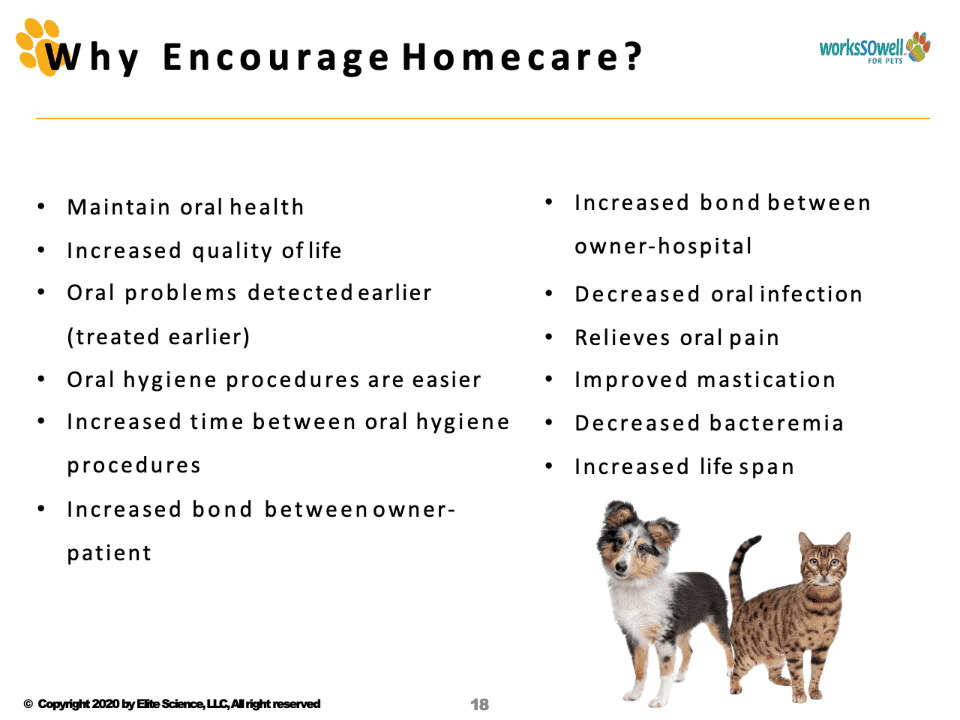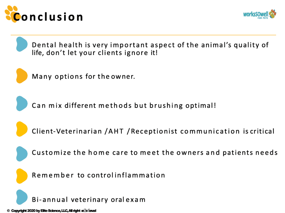 - Dental health is a very important aspect of the animal’s quality of life, don’t let your clients ignore it!