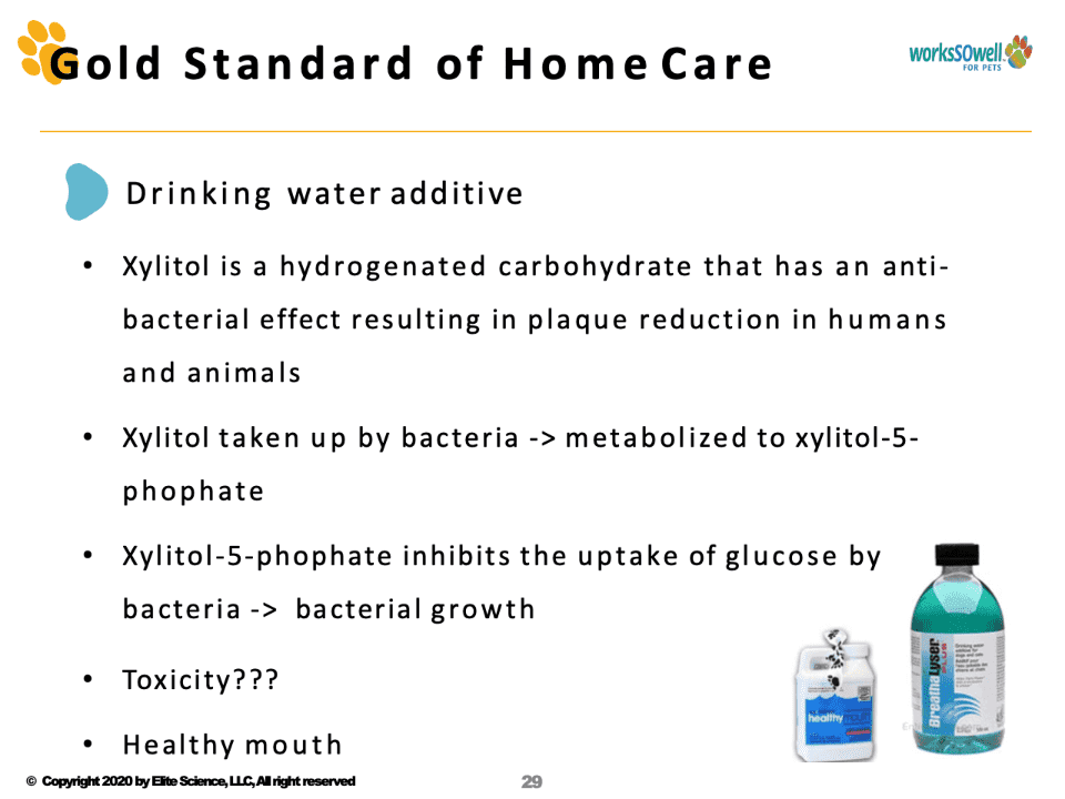 - Xylitol is a hydrogenated carbohydrate that has a n antibacterial effect resulting in plaque reduction in humans and animals