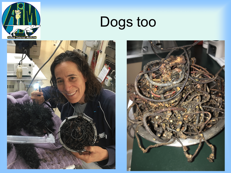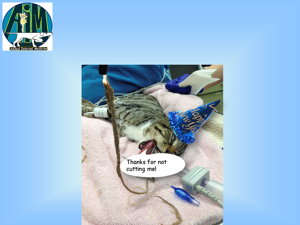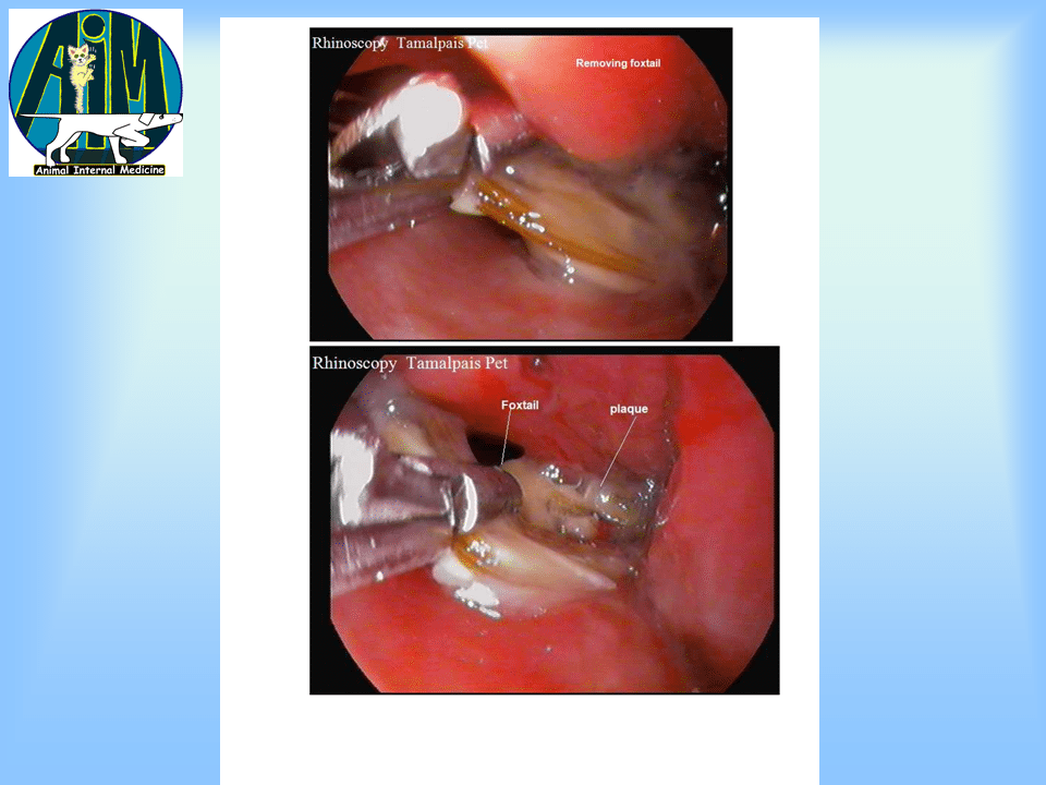 With cats, what they usually do is they eat the grass and then they vomit up into the nasopharynx. Then we have to go over the soft palate over the back of the nose to pull out that grass or whatever foreign bodies they vomited up into nasopharynx.