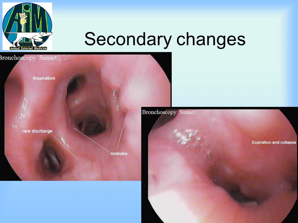 – Scope for laryngeal function exam, oro/nasopharynx, assess extent of disease (e.g. collapse, secondary changes), search for foreign body, masses, or to follow up on treatment
