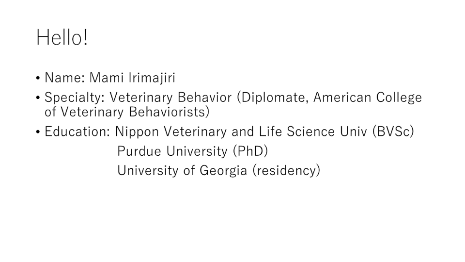 - Education: Nippon Veterinary and Life Science Univ (BVSc)