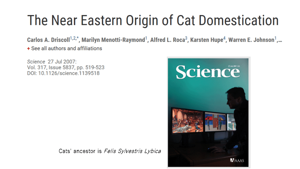 (JD Vigne et al. Early taming of the cat. 2004. Science 304. )p.8 -