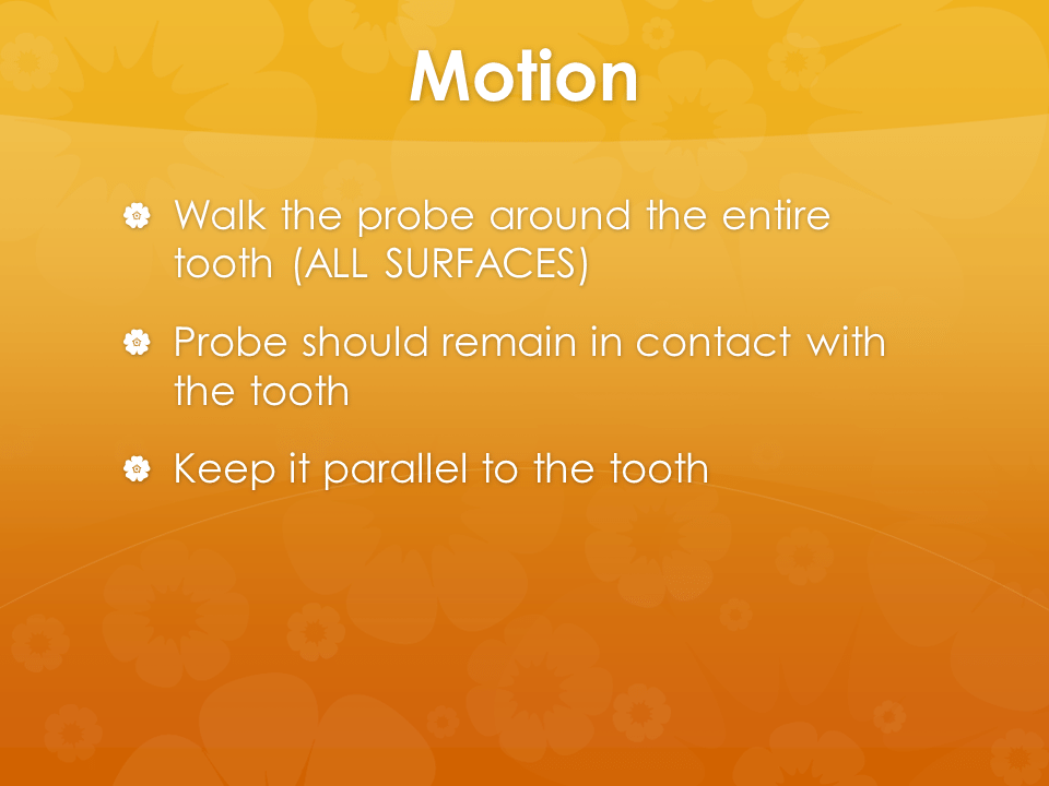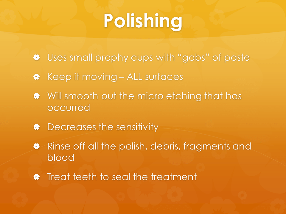 - Spend about 10 seconds per tooth at a time (time varies depending on machine)