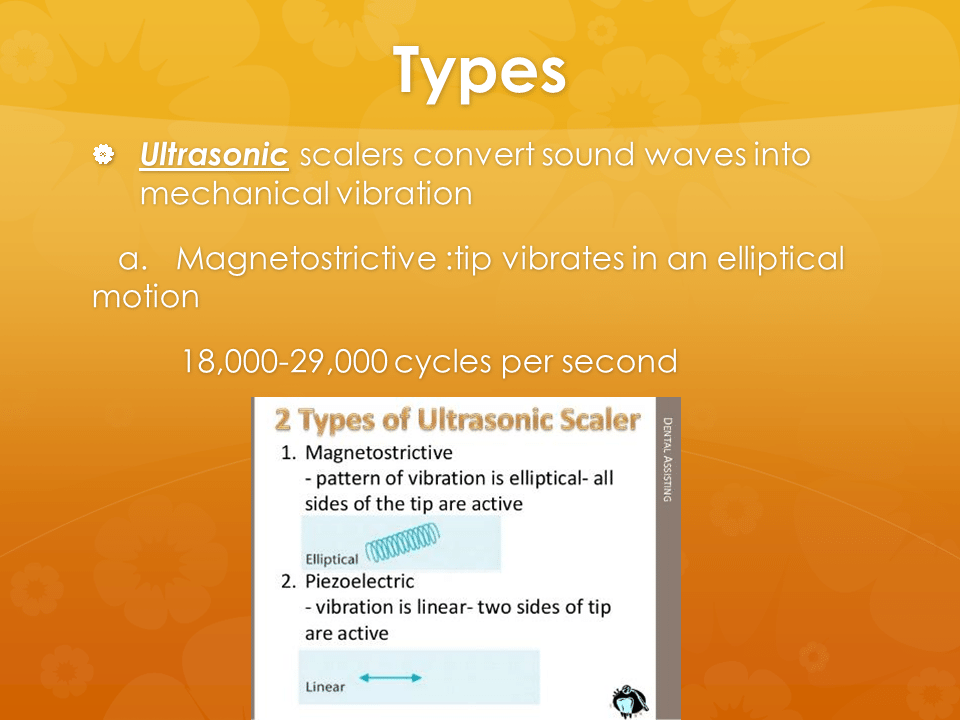 - Ultrasonic scalers convert sound waves into mechanical vibration